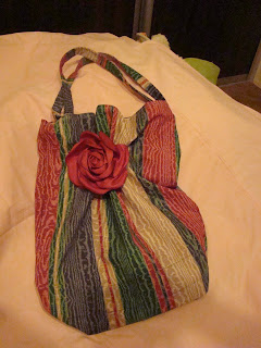 Od dawna marzyłam o torbie. Kupiłam rączki bambusowe, ale one miały być do torby zrobionej na szydełku.Tylko kiedy ja ją zrobię:) Niestety u mnie również doba nie chce w żaden sposób się przedłużyć, a te 24 godziny to za mało i to bardzo... Dziś miałam prasować, malować meble do córciowego pokoju, a tym czasem spędziłam na szyciu.Udało mi się dzisiaj kupić materiał ( a raczaej część) za całe 2, 30 i od razy pomysłam, że wykorzystam go na torbę.